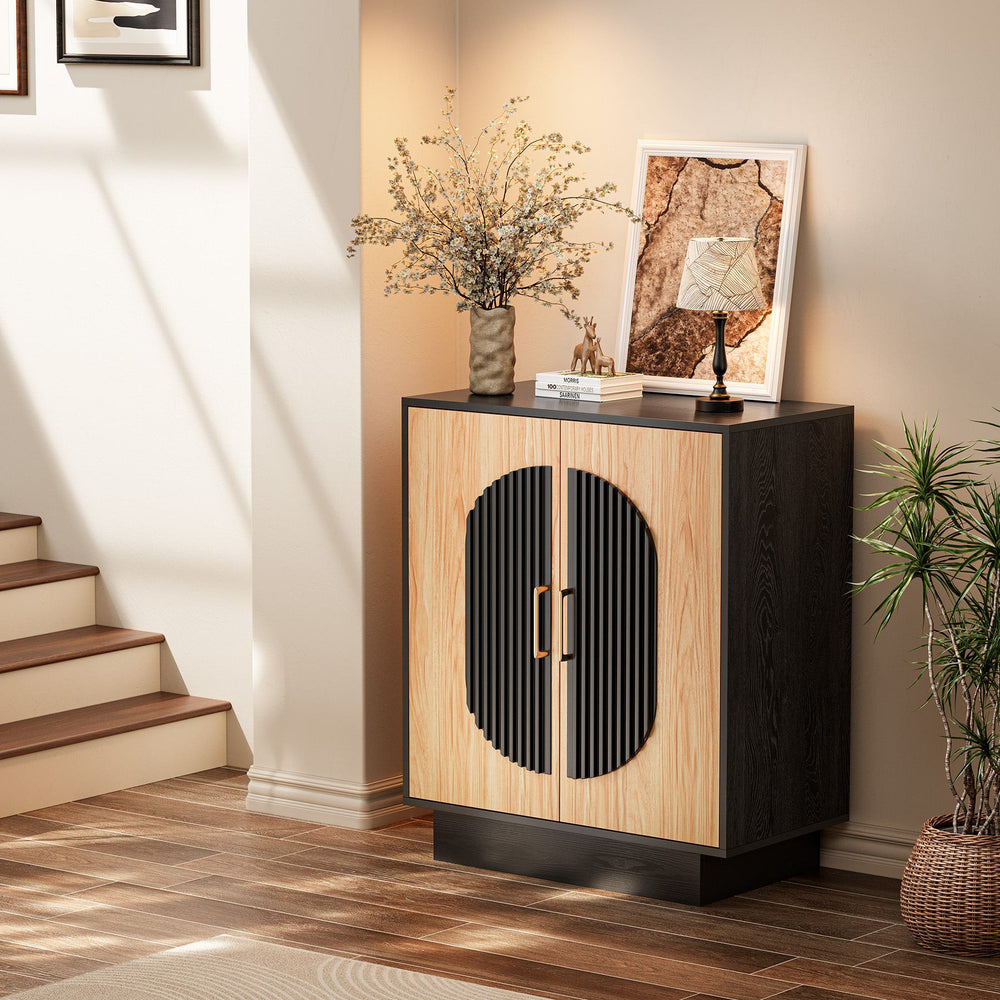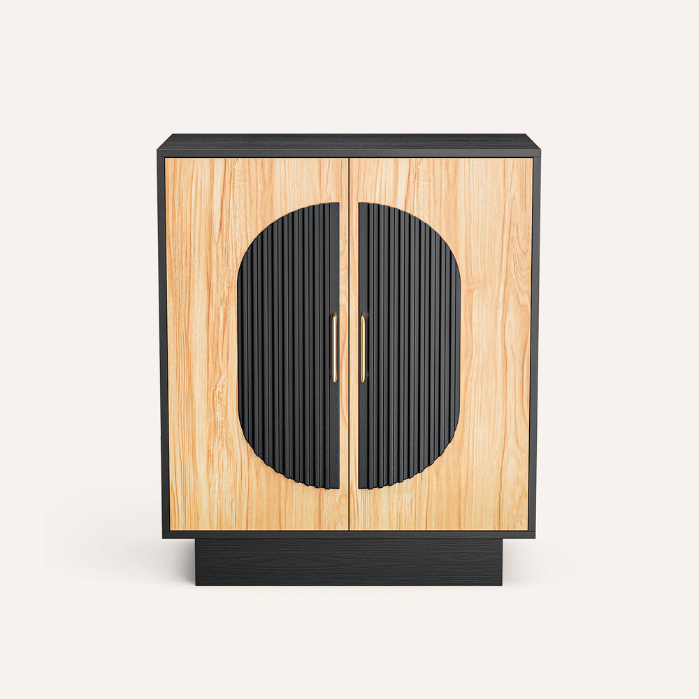 Verinch Multi-Purpose Fluted Sideboard Credenza, Walnut & Black – BC002